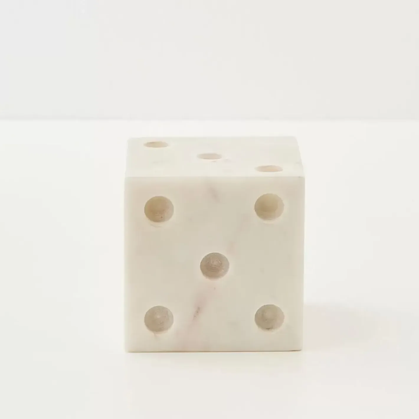 Play Your Best Hand With Playful Interior Pieces Like This Dice-Shaped Marble Sculptural Paperweight Honed From Classic White, Beige And Grey Toned Marble.