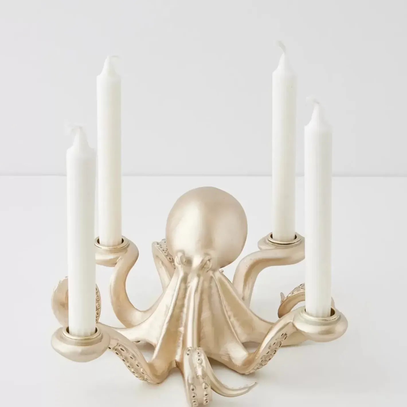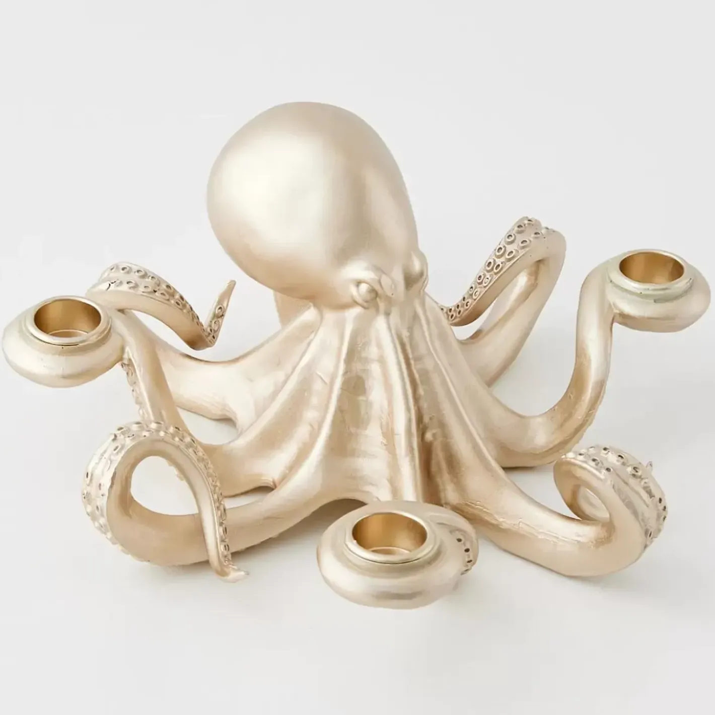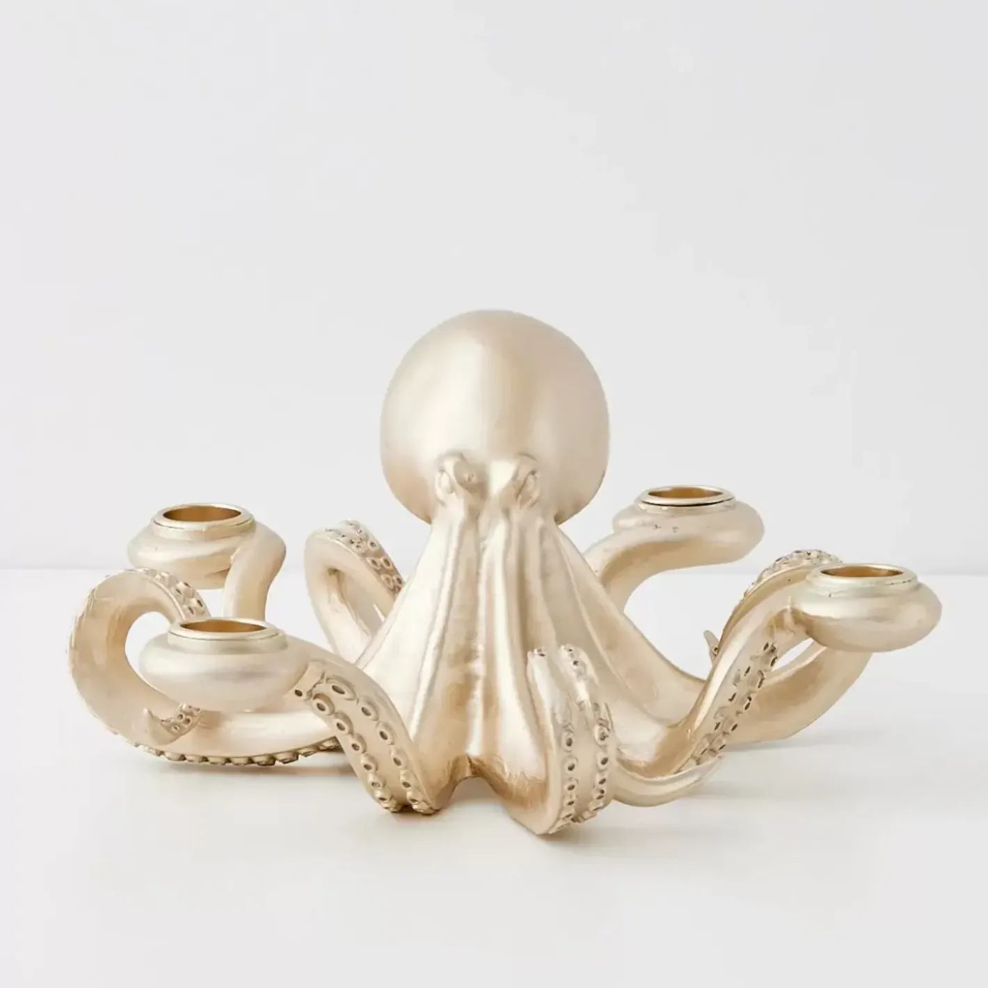 Curl Into Candlelight With Our Captivating Octopus Candle Holder! The Metallic Gold Resin Finish And Four Candle-Holding Tentacles Let You Customise Your Preferred Glow Intensity.