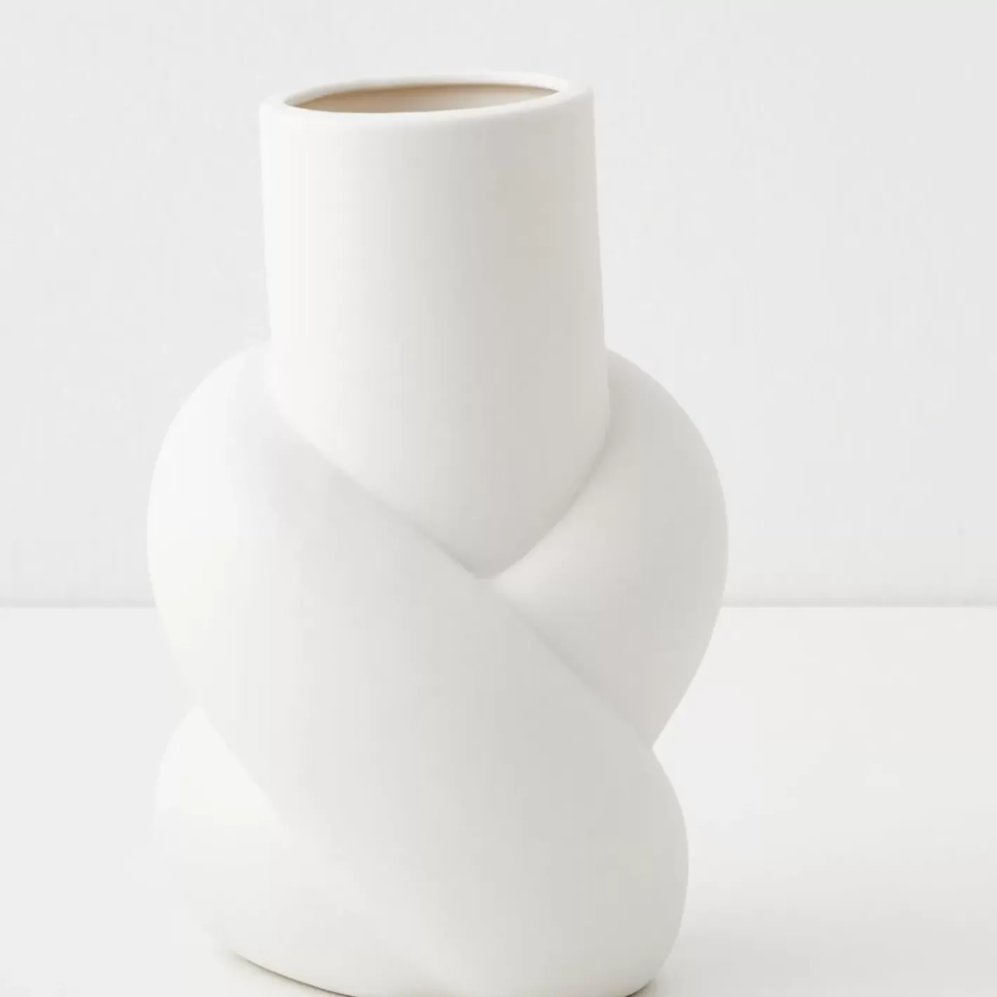 Impeccably Crafted Smooth Ceramic Has Been Effortlessly Shaped Into An Elegant Fluid Knot For A Uniquely Shaped Sculptural Piece Or Floral Vase In Classic, Easy To Style White Colourway.