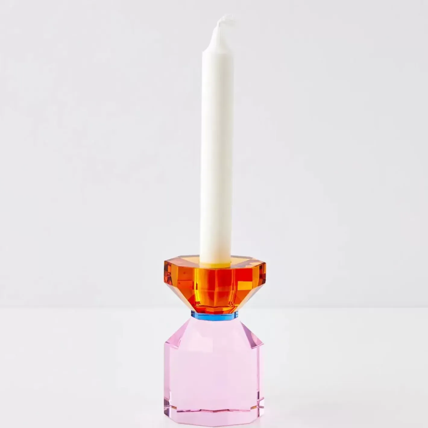Refract Light And Reflect Ethereal Interior Style With This Expertly Cut Crystal Taper Candle Holder In Sweet Shades Of Pink And Honey-Like Amber; The Perfect Piece To Inject Sheer Joy To Your Home.
